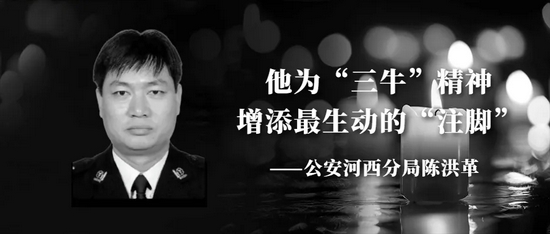 人无精神则不立,国无精神则不强。农历辛丑牛年,当举国上下正以“孺子牛、拓荒牛、老黄牛”三牛精神为指引开启新征程时,公安河西分局治安管理支队民警陈洪革用他的一生为“三牛”精神增添了生动“注脚”。