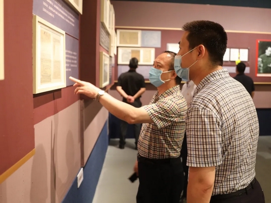 观展过程中,党员干部们一边听取讲解,一边仔细观看展览,不时在展柜边驻足观看,大家深刻感悟百年大党的思想伟力,从中汲取精神力量。