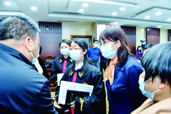 近日,和平区法院适用特别程序审理了一起涉未成年人监护权案件,为一名6岁女童确定监护人,并联合市区妇联、区教育局、区司法局等相关部门为其提供心理疏导等帮助,共护未成年人健康成长。图为庭审后法官与孩子监护人进行沟通。