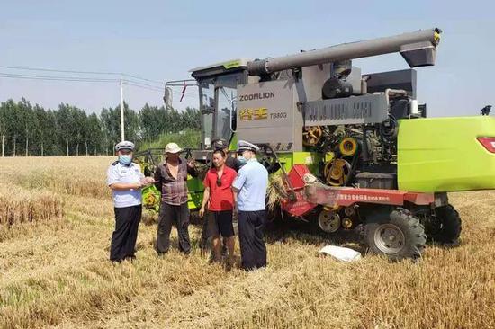 农忙麦收时节,收割机无牌、无证驾驶等违法行为时有发生,同时存在农民晒粮占道行为,存在道路交通安全隐患。为有效预防农忙引发交通事故,交警支队结合辖区实际,切实将“我为群众办实事”实践活动落实到具体工作之中,贴心服务群众,采取多项举措,筑牢农忙时节的交通安全防线。通过“大喇叭”广播,走街串巷、走进田间地头,流动宣传车等方式,宣传交通安全知识,切实提高群众的安全出行意识。对收割机驾驶员加大宣传引导力度的同时,常态化开展农村道路交通安全集中整治行动,严查报废、无牌、无证、酒驾、超员等重点交通违法行为,切实形成高压严管态势。
