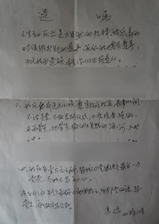 我存有壹万元人民币,替我向党组织交最后一次党费,尽我不忘初心。孩子们,永别了,听共产党的话,跟党走,永做守法公民。