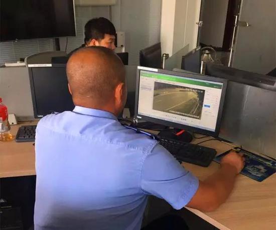现场执勤人员快速反应,合力将车道上灭火器推向该车,一边跑一边喊,示意车上司机停车、下车。
