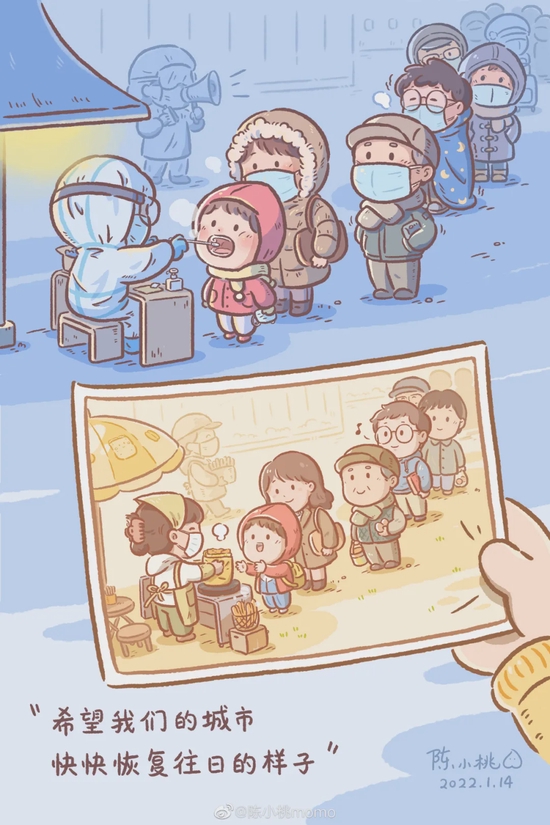 辛苦付出的医护人员、守护旁边的志愿者、秩序井然排队核酸的市民,这不就是我们身边熟悉而令人感动的画面吗?