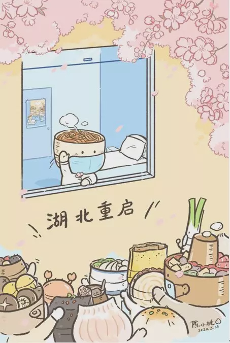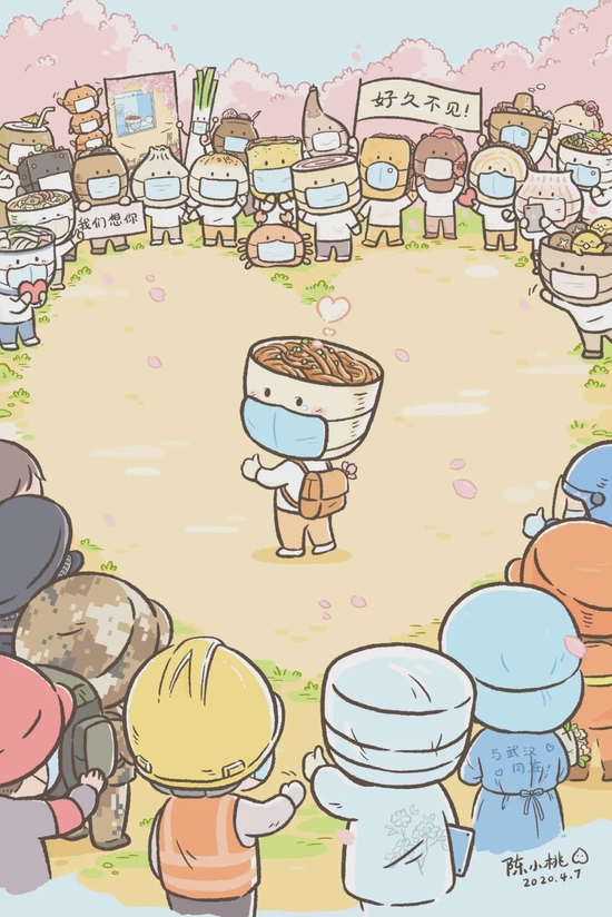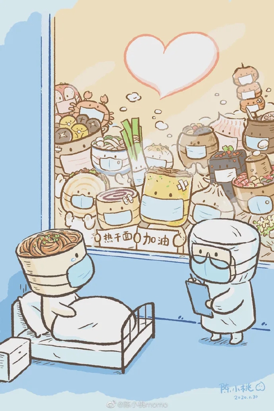 ▲“陈小桃momo”1月30日发表漫画“热干面加油”。