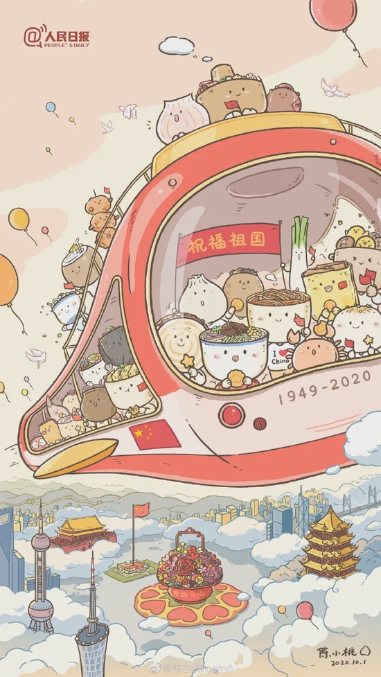▲“陈小桃momo”2020年10月1日发表漫画“这一次我们好好团聚”