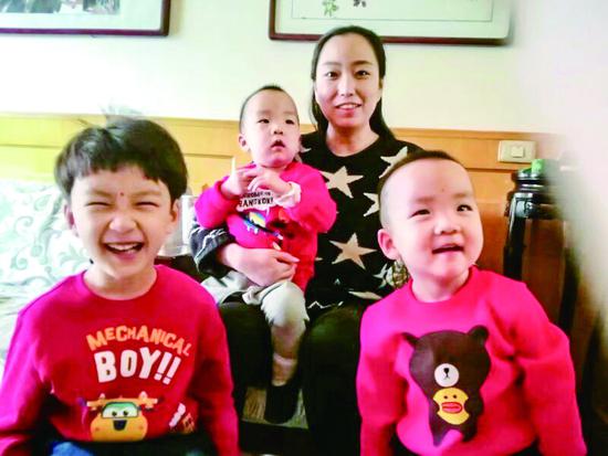 2013年,张剑飞和焦岩的第一个孩子出生。三年后,他们又迎来了二胎宝宝,而且是一对双胞胎。焦岩说,自从成了三个孩子的母亲,她每天的生活就好像在“打仗”,而且是“游击战”。