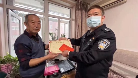 不能让做了好事的人就这样淹没在人群中。经调查,民警找到了蒋德勤,得知他被砸伤后经医院诊断为右脚大脚趾骨折。近日,公安南开分局确认了蒋德勤的见义勇为行为,南开见义勇为协会为其颁发证书和奖金。