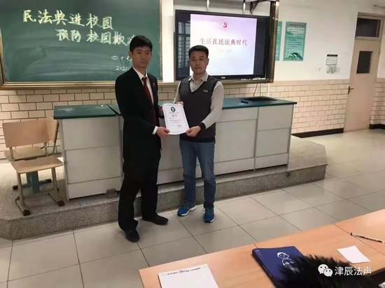 课前,该校德育处主任亓凯同志宣读了关于聘请北辰法院天穆法庭员额法官孟伟同志为四十七中学法治副校长的决定,并当场颁发了聘书。法治课上,孟伟法官从民法典概述、民法典影响和社会热点典型案例三个方面展开,引导学习树立法律意识,养成自觉守法、遇事找法、解决问题靠法的思维习惯和行为方式。课堂上,学生们踊跃提问、热烈讨论,取得了良好效果。课后同学们纷纷表示以后要认真学习法律知识,成长为一名尊法、学法、守法、用法的新时代好青年。