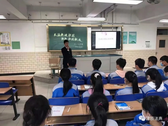 近日,北辰法院天穆法庭孟伟法官走进四十七中学,为学生们主讲了一堂题为“民法典进校园 预防校园欺凌”的法治课!