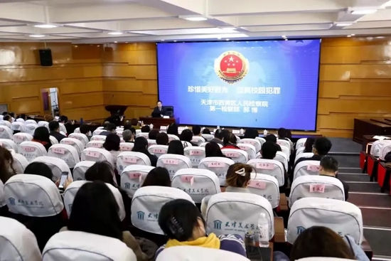 近日,在天津美术学院校园普法活动启动仪式上,西青区检察院“青检之声”法治宣讲团的检察官郝博被聘为该校普法讲师。