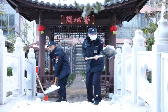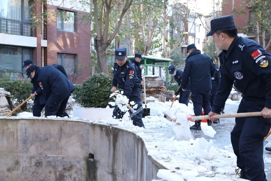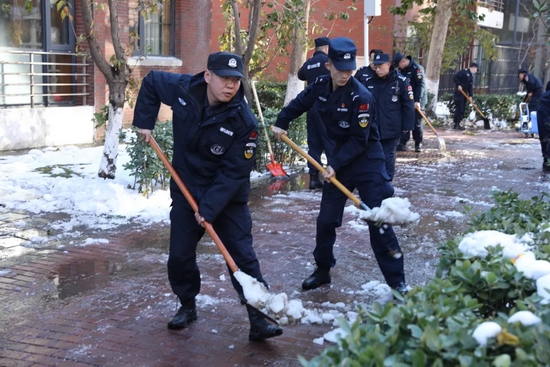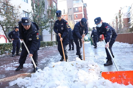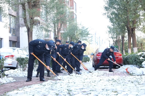 11月7日的一场大雪突袭津城,给群众出行带来了诸多不便和安全隐患。为巩固深化党史学习教育和政法队伍教育整顿成果,深入开展“我为群众办实事”实践活动,11月9日,公安北辰分局特警支队党总支组织18名党员、入党积极分子在公安楷模、天津楷模郭志龙的带领下,到北辰区瑞景街道宝翠花都社区开展志愿活动,帮助群众铲除路面冰雪,方便了群众出行,受到社区群众的一致好评。