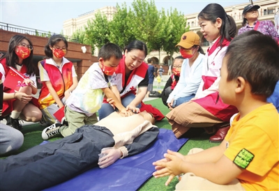 “两只胳膊要夹紧绷直下压,同时要注意观察被施救者呼吸情况……”10月3日,在南翠屏公园的红十字救护站,市红十字会机关党员志愿者细心教游客进行心肺复苏训练的场面吸引了众多游人的目光,很多人拿出手机拍下了这一幕。这是国庆假期全市红十字系统在主要旅游景区、机场等公共场所开展的“关爱生命,救在身边”红十字志愿服务活动的一个缩影。