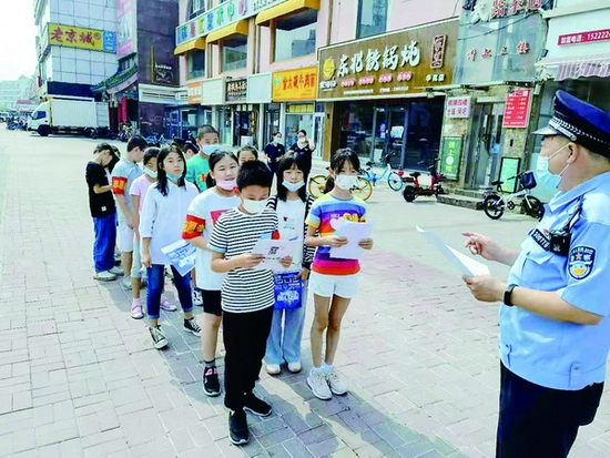 随后,社区民警带领小学生、家长和老师一行近30人,深入社区和临街店铺,由小学生向居民和顾客发放宣传材料,讲解防诈常识,推广安装国家反诈中心App,并详细介绍功能和使用方法。
