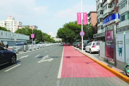 从交警河西支队了解到,因机动车与非机动车交叉通行现象明显,所以使用醒目的红色将非机动车道与机动车道区分,从而在视觉上起强烈的提示引导作用,起到规范非机动车行驶的目的。红色的非机动车道与黑色的机动车道形成视觉上的自然区分,警示驾车人不能停靠,解决因机非混行增加交通事故发生概率的问题,也保障了非机动车及行人交通出行的路权,让交通秩序更加规范,目前在河西区微山路的珠江道至大沽南路非机动车道也被设置为慢行车道。