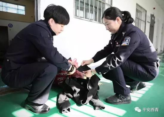 每天都会有家属来给在押人员送衣物。每一件,李晓旭和赵娜都会细心检查,尤其是要将衣物中尖锐的部分剪除。