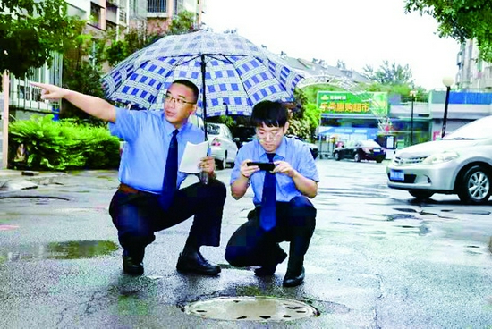 “雨怎么越下越大了,不等了,我们走!”刘钢拿起伞,和书记员急匆匆向院外走去。原来,他一早定好了排查窨井盖。近年来,窨井“吃人”事件频发,这让刘钢不免有些担心。