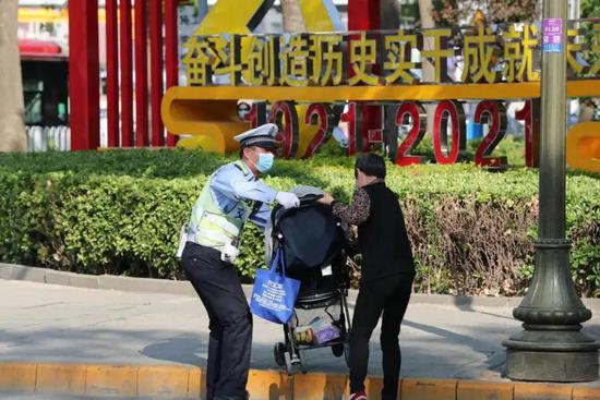 一手拦停,一手护送,刘昭旭用双臂撑起安全的港湾。