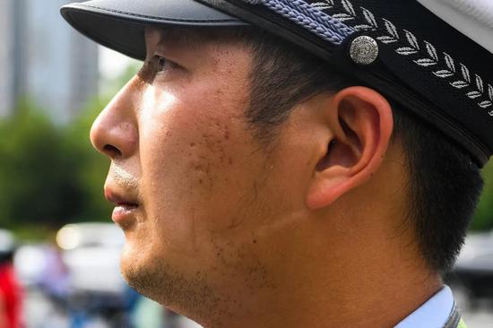“春秋还好,但是赶上夏天下雨、冬天刮风,这一天下来,整个腿就像不是自己的一样。前几天傍晚下大雨,正好赶上我执勤,积水漫进鞋里,走起路来呼哧呼哧的。干我们这行,就是废鞋。”