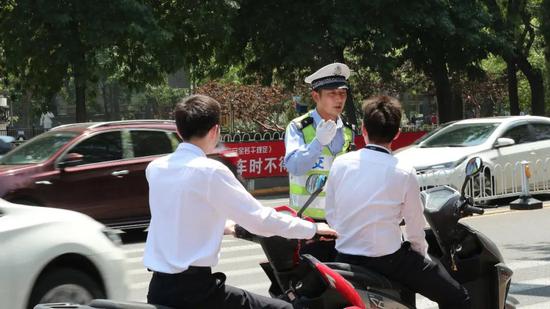等待红灯的空隙,刘昭旭一个敬礼,耐心地提示电动自行车和助力车的驾驶员。“现在夏天到了,有些群众为了凉快就把头盔放在储物箱,还有些外卖小哥、助力车驾驶员为了省事逆行,这要是发生碰撞,耽误工作不说,身体也吃不消。”