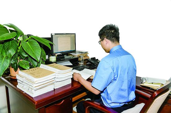 每天上班,孙天乐总是早早地来到办公室,在准备案卷的同时也把《刑法一本通》《刑事诉讼法一本通》等书籍摆放好,随时准备翻阅。有时同事们都下班了,他还在为弄清楚某个案件事实适用的法律罪名而加班加点。在办案过程中,他总会随身携带一个笔记本,把不明白的问题记录下来,回去向其他同事请教。