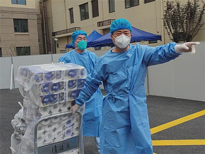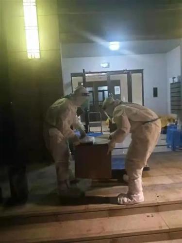 集中隔离点的隔离人员大多面临着思想、情绪、生活等方面的压力和困扰。作为服务保障人员,一定要更勤快、更贴心、更周到,用真心真情解决好他们的后顾之忧。穿着“大白”来回穿梭,闷热难耐,有时面罩因雾气看不清,汗水把里面的衣服都湿透。为方便工作,更是长时间不敢喝水。吴晓东、薛松玮2名同志不叫苦不喊累,克服各种困难,耐心细致地做好为隔离人员送饭送水、搬运物资等工作。在服务微信群内,他们被很多隔离人员称为“最勤快的大白”。