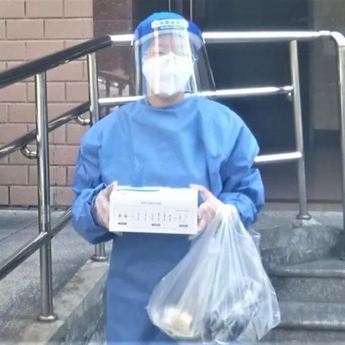 4月3日,原定的核酸检测采样取消,改为抗原自测。钟胜华的妻子和女儿第一时间参加小区发放抗原试剂盒的志愿服务工作。