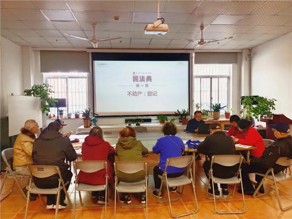 10月中旬,长春居委邀请了社区法律顾问开展普法培训,通过宣讲《民法典》,增强了广大社区老年居民尊法、学法、守法、用法的意识。