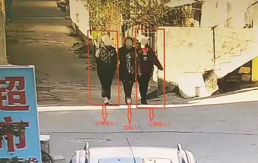 ⬆图为监控视频拍到的2名嫌疑人与受害人