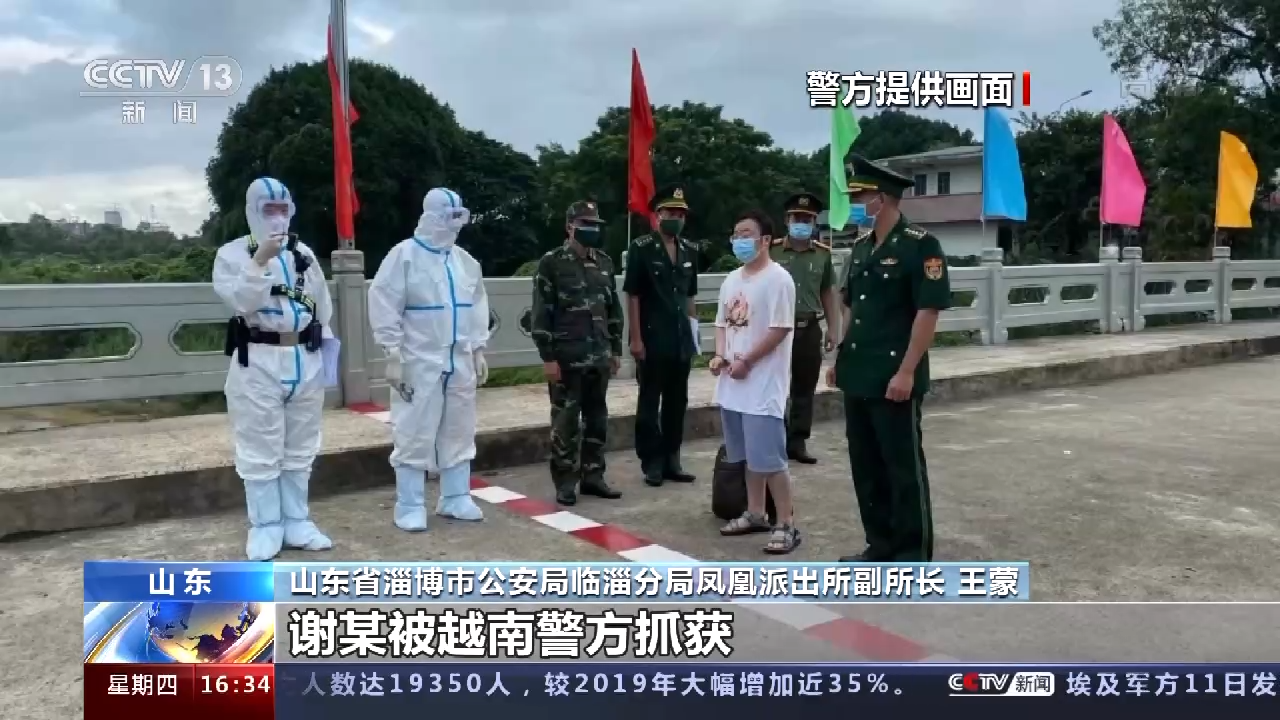 山东省淄博市公安局临淄分局凤凰派出所副所长 王蒙:通过(山东)省公安厅和公安部对谢某进行了蓝色通缉令追逃,最终在双方的共同努力之下,谢某被越南警方抓获,然后通过东兴口岸移交给了咱们临淄公安分局。