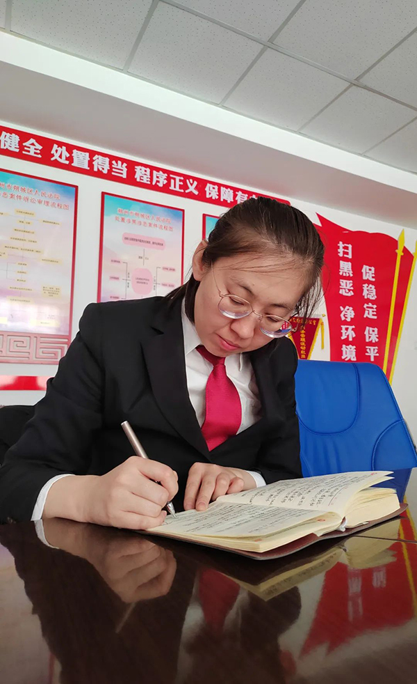 该同志将大量的工夫花在庭前,通过对案卷材料细致地审查,对繁杂的证据材料进行抽丝剥茧地做好庭前准备工作。制定《涉黑案件公开审理方案》,配合宣传、后勤、安保等各部门工作,确保审判活动正常进行。案件审理后起草200页10万余字刑事判决书,最终在规定时间内辅助承办法官将该案顺利审结,对扰乱交通行业秩序的犯罪分子予以有力打击,取得良好社会效果。作为联络员,经常加班加点,自专项斗争以来赵瑞芳共向上级法院及区扫黑办报送数据台账200余份、工作总结及情况报告150余份、起草各类工作方案80余份。在抓好业务能力的同时,积极参与社会治理体系和治理能力现代化建设。做好司法建议工作,坚持一案一建议制度,向多部门发出司法建议42条,全部收到回复。