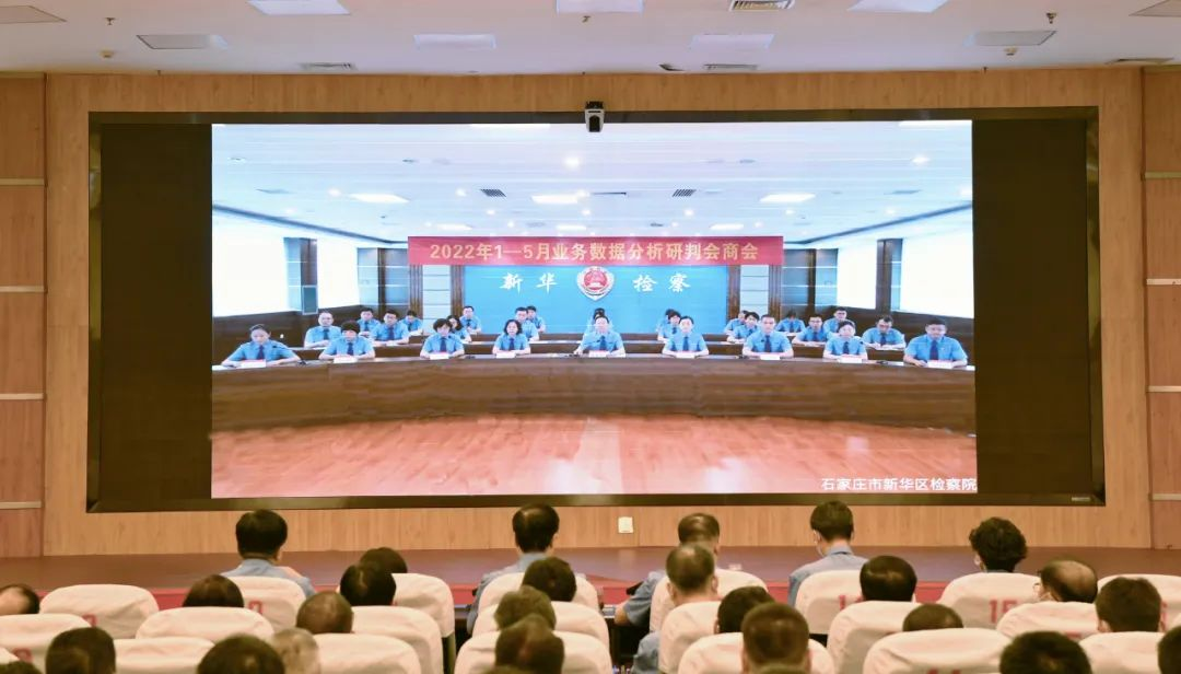 会议以电视电话会议形式召开,市县两级院相关院领导、检委会委员,相关部门负责人、全体员额检察官参加会议。会上,通报了全市检察机关1至5月主要业务数据情况,并在线观摩了新华区检察院1至5月检察业务数据分析研判会商会。