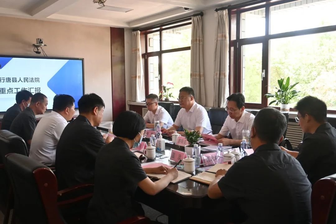 6月8日,石家庄市中级人民法院党组书记、院长李霁到行唐县人民法院调研指导工作。行唐县委书记韩旭,县委副书记周建红,行唐县人民法院党组书记、院长尹敬田等参加调研。