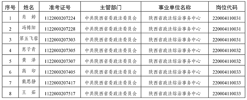 2022年中共陕西省委政法委员会所属事业单位公开招聘工作人员进入面试资格复审人员名单