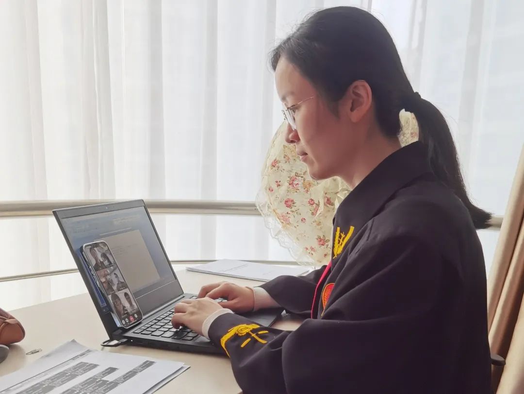 居住小区被划定为参照管控区后,龙华法院法官朱嘉蹊通过移动微法院在线审理案件