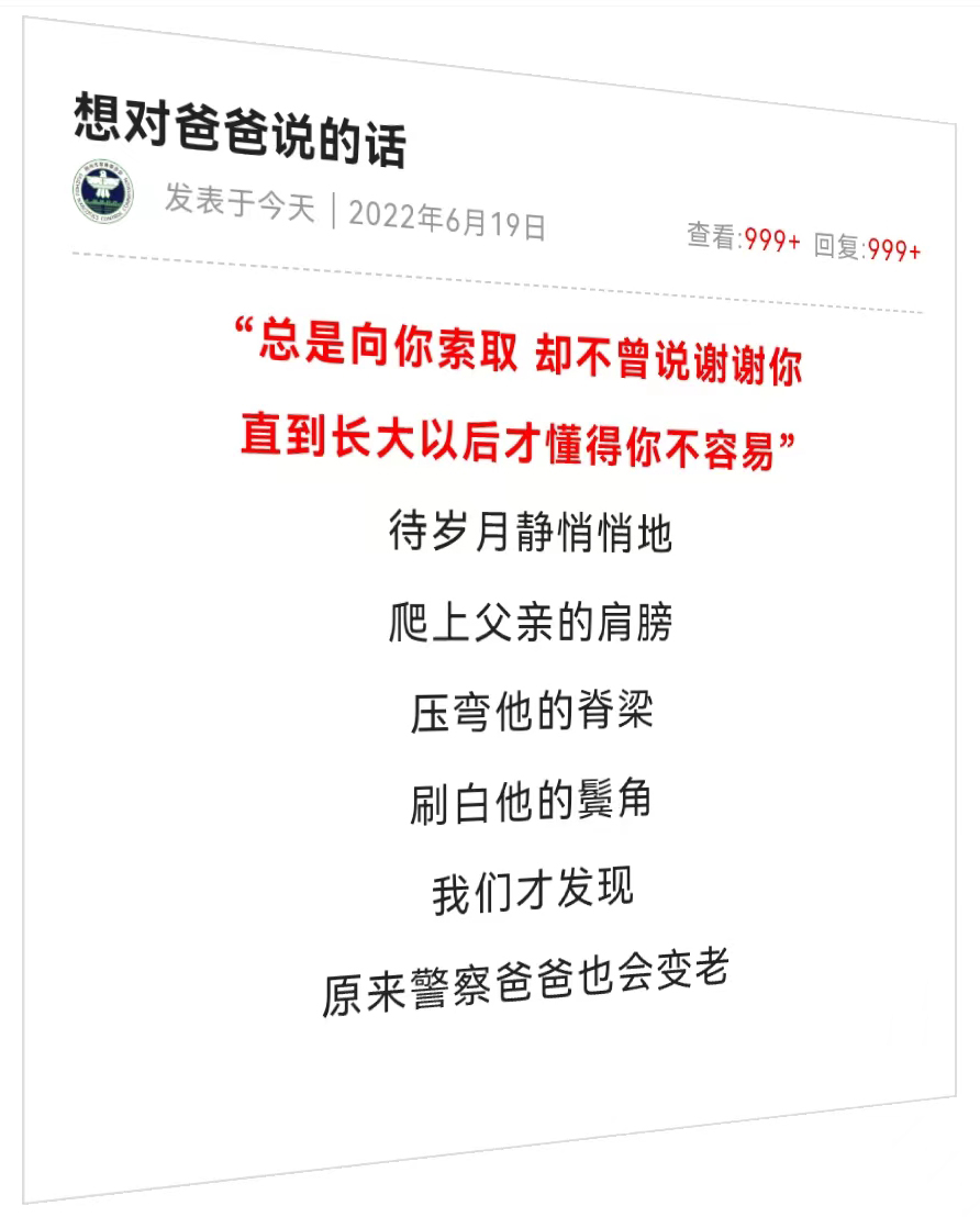 祝福所有的父亲平安健康节日快乐!致敬所有的警察爸爸!