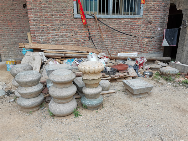 审讯过程中,一开始嫌疑人林某敏拒不交代同伙及犯罪事实,民警通过翻看手机内的聊天记录和图片等,发现林某敏经常与一个叫“祖顺”的人聊天,内容多为一些佛像、石狮子等物,通过比对,民警发现几张图片明显为失窃物。在大量的事实证据面前,嫌疑人终于交代了盗窃文物的犯罪事实及藏匿赃物的笏石镇顶社村租住处,办案中心立即组织民警前往藏匿现场。在藏匿文物的破旧房屋院内,有两只看门的狗对着闯入的民警狂吠,正屋大厅内竖立着两根被盗的石狮柱。