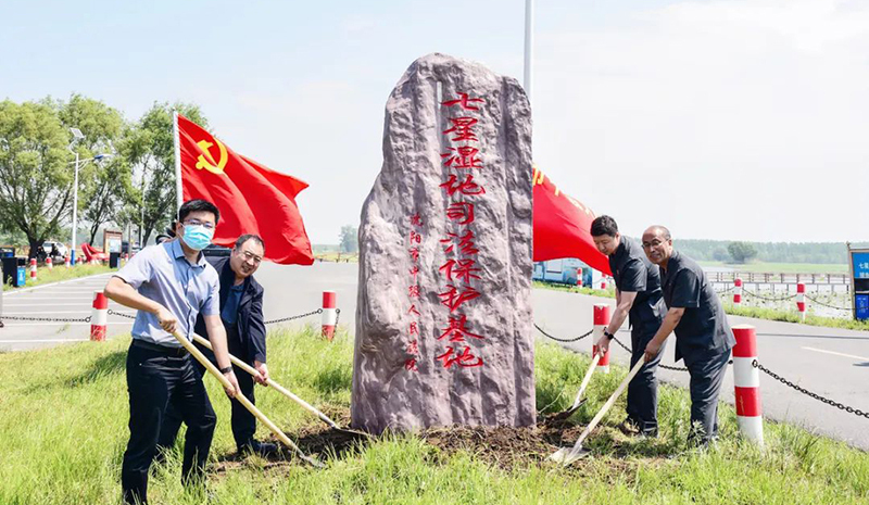 沈阳中院副局级审判员郭图新、沈北新区农业农村局局长刘晓共同为“七星湿地生态环境司法保护基地”揭幕并奠基,为“青少年生态保护法治教育实践基地”揭牌。