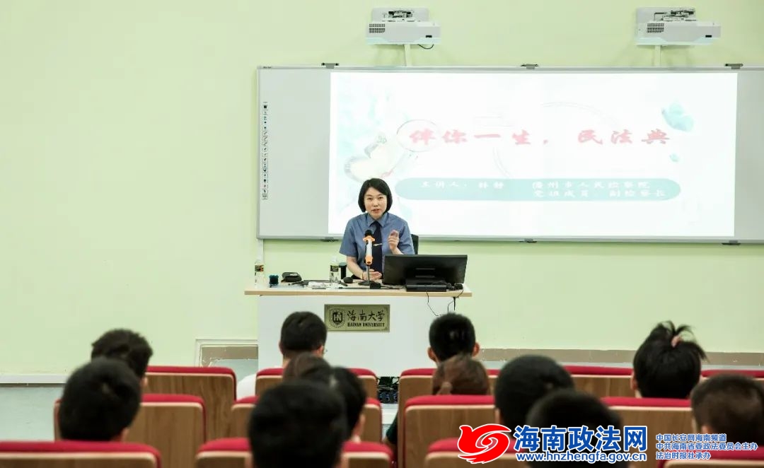 近日,儋州市检察院相关负责人走进海南大学儋州校区,为该校130余名学生开展“伴你一生,民法典”为主题的法治专题讲座。