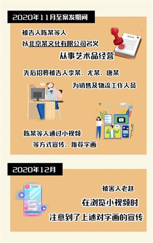 在陈某的“真诚”推荐下,老赵看中了一些字画,就在他犹豫不决是否拿下的时候,有自称著名拍卖行的人员和老赵联系,并表示老赵目前看上的字画都是佳作珍品,极具投资价值。为了死死抓住老赵这条“大鱼”,“专业人士”不断向老赵抛出有人要高价购买一批字画等消息。