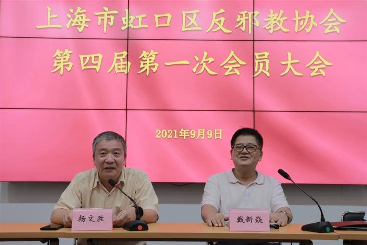 虹口区反邪教协会9月9日召开“虹口区反邪教协会第四届一次会员大会和理事会第一次会议”。虹口区委政法委副书记杨文胜、戴新焱出席会议,来自全区各界会员共56人参加会议,协会秘书长朱朝晖、理事陶华分别作了报告,会议由协会副秘书长孙照华同志主持。