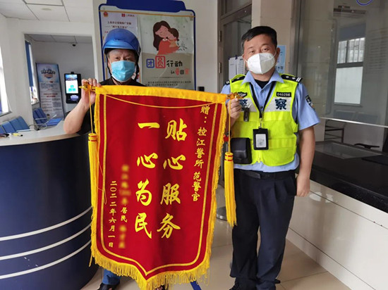 疫情封控期间,家住控江路某小区的市民滕老先生夫妻俩因为用药问题及物资原因,向民警范泉华求助。民警范泉华多次往返医院为滕老先生夫妻俩配齐急需用药。物资紧张期间,范泉华从居委、所里协调筹集了鸡蛋、蔬菜、水果等物资并送上门,解决了老夫妻俩的燃眉之急。小区疫情刚结束,滕老先生就到派出所给社区民警范泉华送来了锦旗表达自己的感谢。