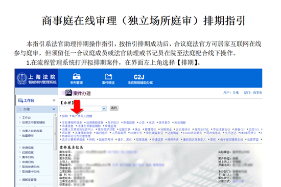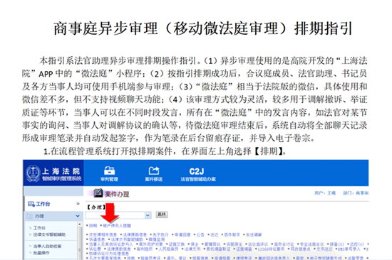 在此期间,他们对异步审理、在线庭审、视频会议等各项在线办公方式进行了及时全面的学习。经过实际操作、截图录屏、字斟句酌后,火速组织编发异步审理排期指引、独立场所审理排期指引及视频会议操作指引三套操作手册,并组织各团队法官助理集中培训,进而向全庭推广。