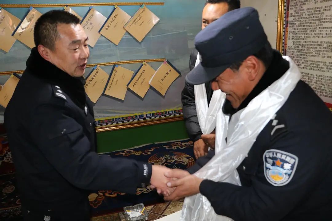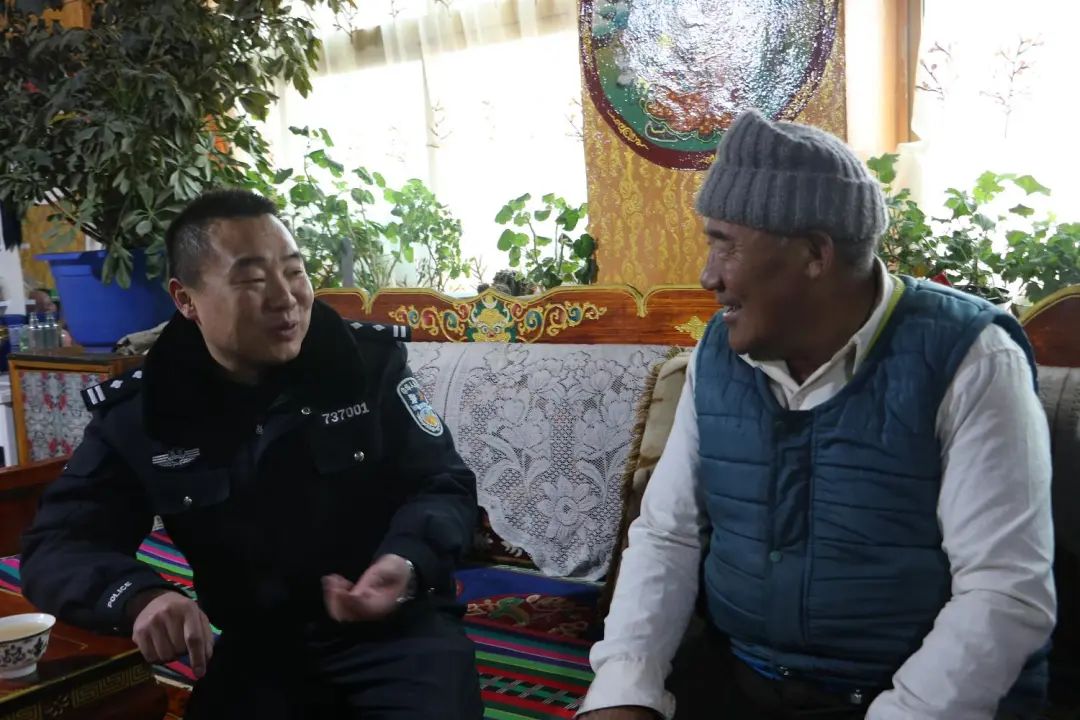 蔺江平前往措勤县公安局退休民警旦琼家中慰问,听取老民警对公安机关改革的意见