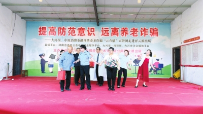 “这些保健品吃了对身体好,错过了可就没有了……”6月20日下午,在郑州经开区祥符卢村文化广场舞台上,来自中原消费金融反诈宣传艺术团的老人们正在现场演出名为《春风化雨》的反诈情景剧。舞台前,郑州市公安局经开分局祥云派出所辖区的老年人看得津津有味。