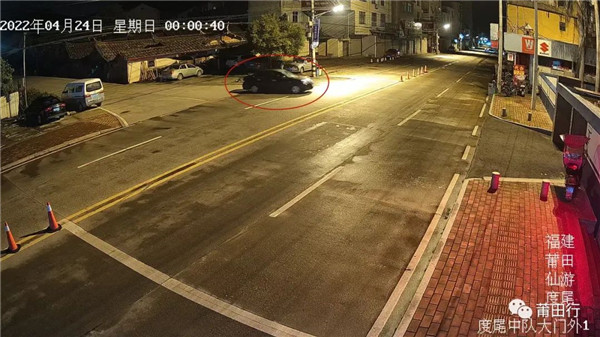 当日凌晨1时许,仙游县公安局交警大队度尾中队门口再次出现一辆黑色可疑车辆。车上下来一名男子,一会蹲在路边,一会来回溜达,时刻观察着度尾交警中队的院内情况,行迹十分可疑。
