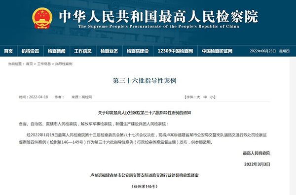 日前,最高人民检察院发布第三十六批指导性案例,福建检察机关办理的这起道路交通行政处罚检察监督案被列为4件指导性案例之首,格外引人关注。