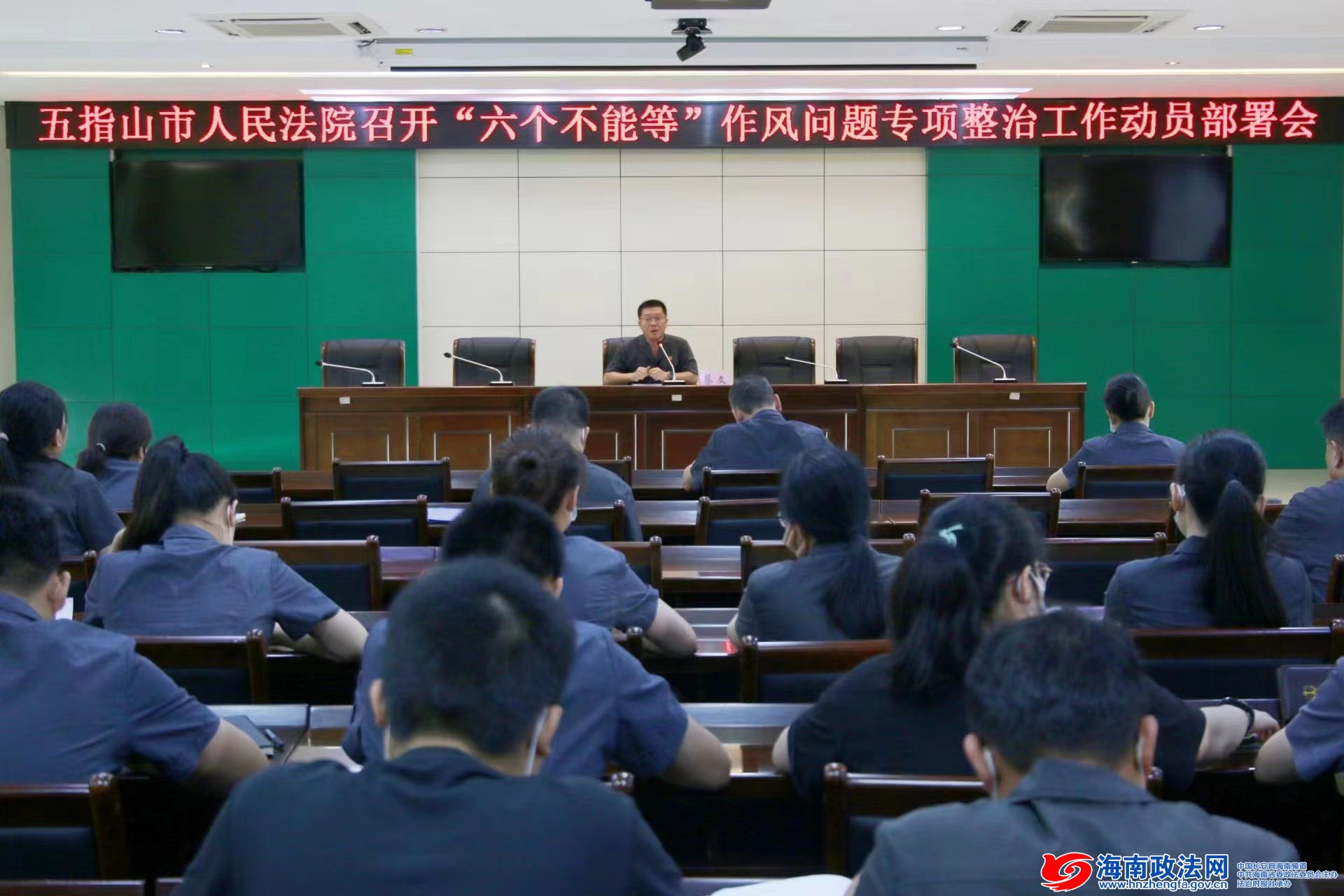 6月23日下午,五指山市人民法院召开“六个不能等”作风问题专项整治活动动员部署会,党组成员、副院长蔡文主持会议并做动员讲话,全院干警参加会议。
