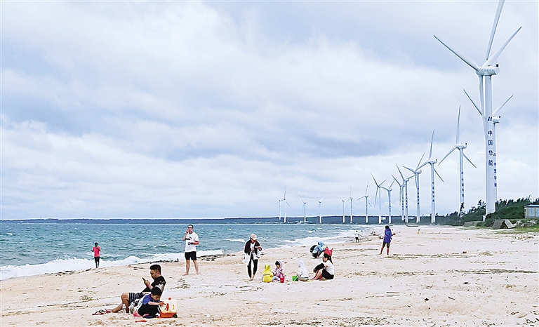 文昌市铺前镇附近海域沙滩成为附近居民周末度假的好去处。 全媒体记者高凌 摄