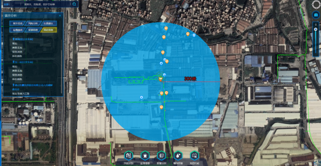 监测中心接报禅城区一处燃气井内出现可燃气体浓度超限报警,系统分析报警点周围防护目标情况