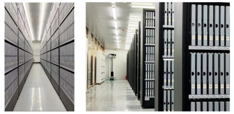 “智能中间库”库内材料保管区域不对外开放,有序陈列31排文件架,可存放超过2万个案件的诉讼材料。文件架之间仅保留一人宽距离,不仅保证案件保存量,也大大提高了保管区域的空间利用率。